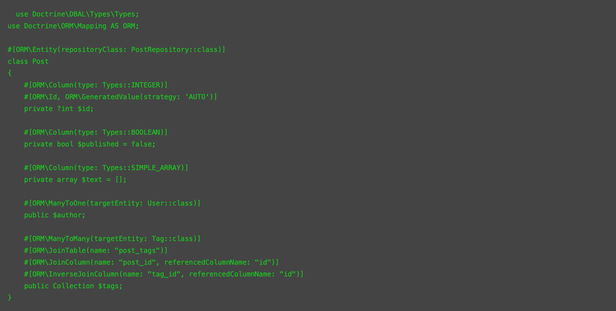 - Анонс Doctrine ORM 2.9, в котором, среди прочего, объявлена поддержка нативных атрибутов php 8 ➔ то есть теперь можно будет делать вот так: